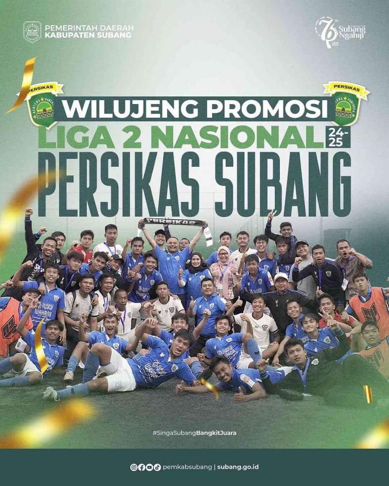 “Tantangan baru telah depan mata. Mari dukung bersama-sama. Persikas Subang Telah tiba di Liga 2 Nasional,” tandasnya