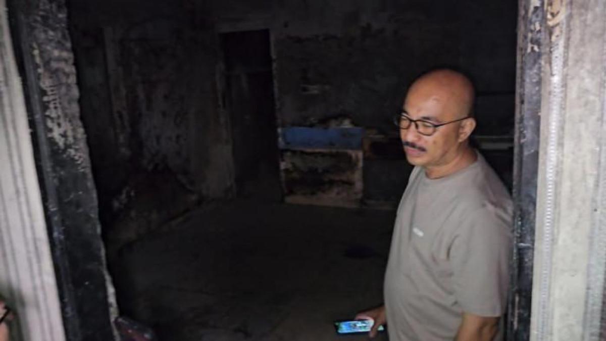 Akibat insiden ini, bagian belakang rumahnya ludes terbakar. Sementara di bagian depan masih utuh.
