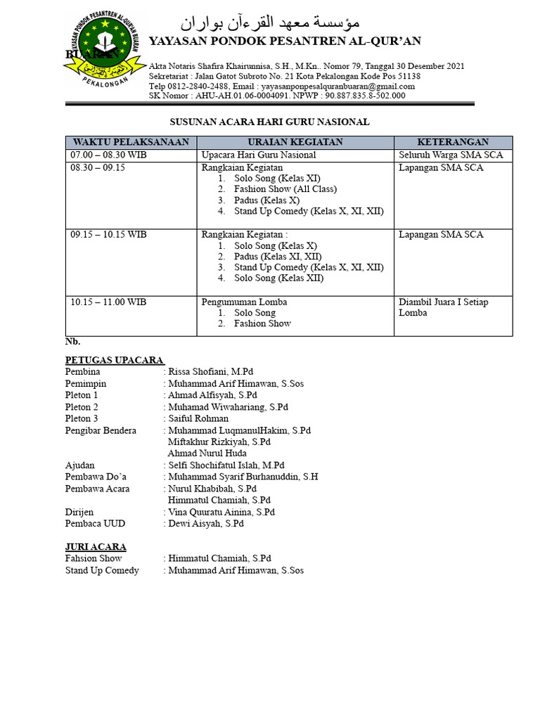 1. Agenda Acara Peringatan Hari Guru Nasional 2025 (Model Umum Sekolah)